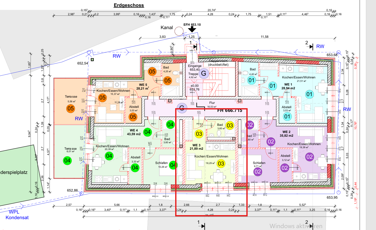Großer Wert wird auf hochwertige Materialien, Energieeffizienz und Wohnkomfort gelegt. Alle Wohnungen verfügen über eine Fußbodenheizung, die durch eine moderne Luft-Wärmepumpe betrieben wird. Eine dezentrale Lüftung mit Wärmerückgewinnung sorgt für ein gesundes Raumklima. Die dreifach verglasten Fenster mit elektrischen Rollläden garantieren nicht nur eine hervorragende Wärmedämmung, sondern auch Ruhe und Sicherheit.